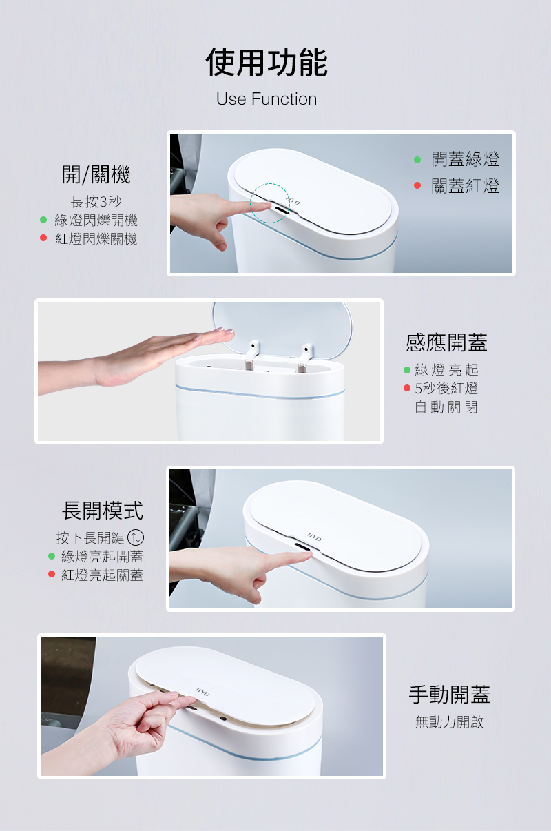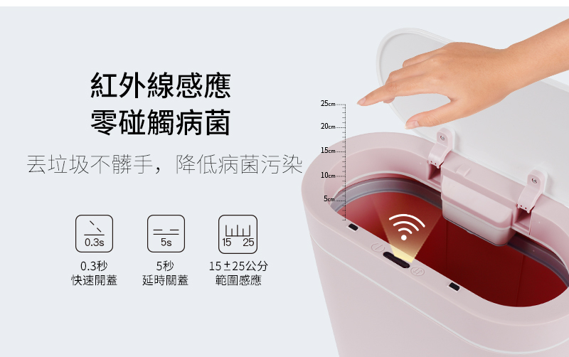 0.3秒快速感應開蓋,5秒自動倒數關閉