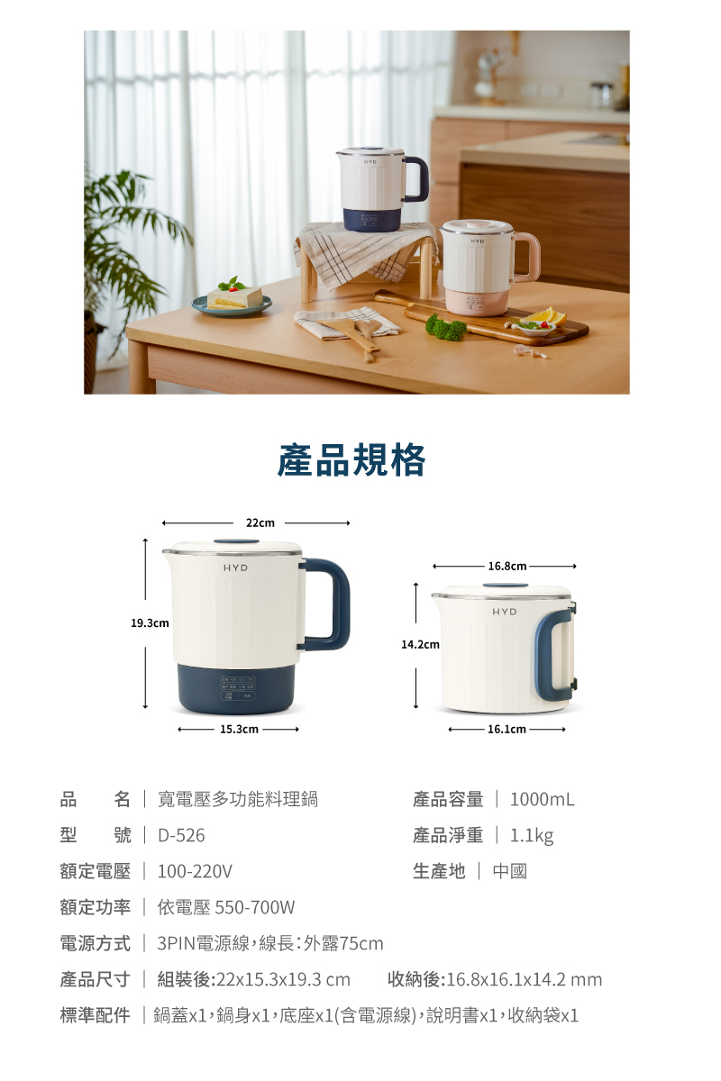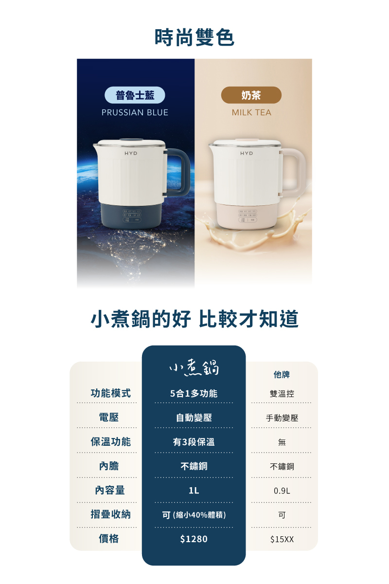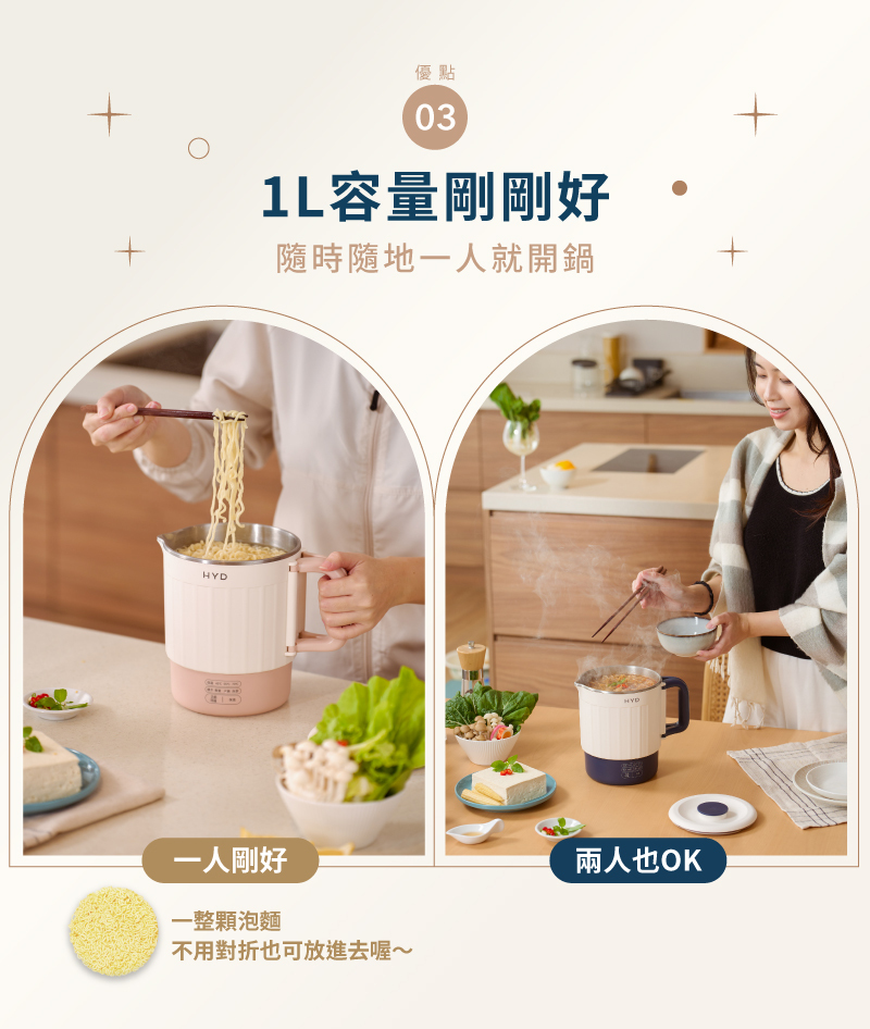 * 1L大容量,僅1.1kg,可輕鬆攜帶,隨時自煮
