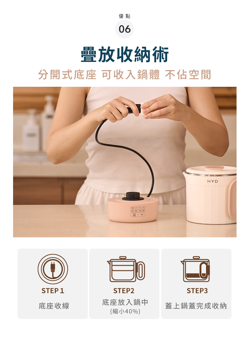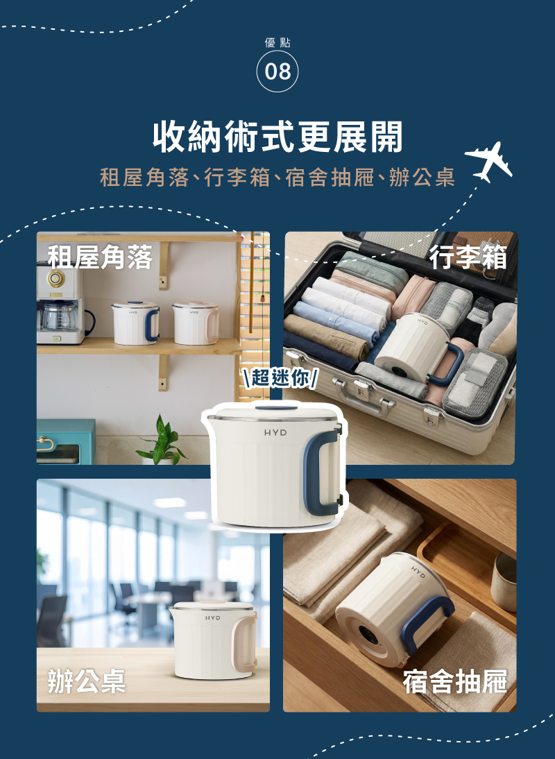 * 好收納 ,折疊式把手及分開式底座,可收入杯體,不佔空間