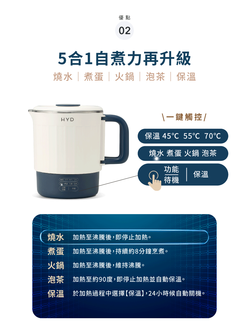 * 5合1多功能最齊全,燒水|煮蛋|火鍋|泡茶|三段保溫