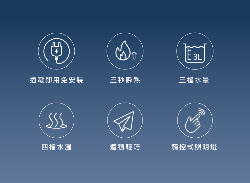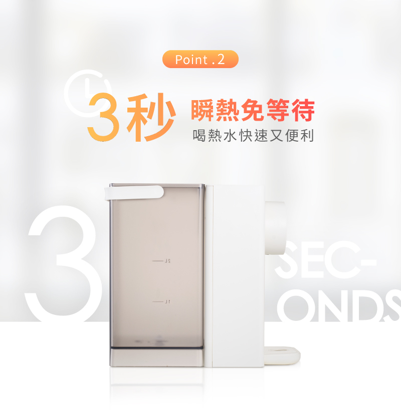 1. 3秒瞬熱,快速達到指定溫度,喝熱水快速又便利。