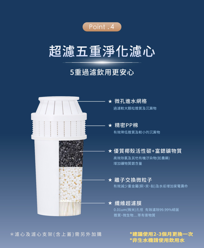 9. 可加購五重淨化濾心,有效除氯、除菌達99%。