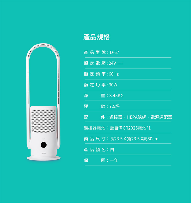 無葉扇設計,360°全方位空氣循環
