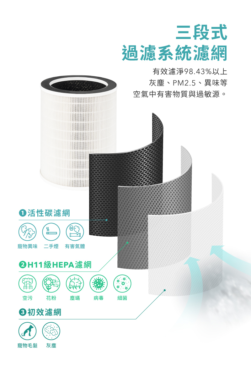 三層過濾層,初效濾網+HEPA濾網+活性碳濾網