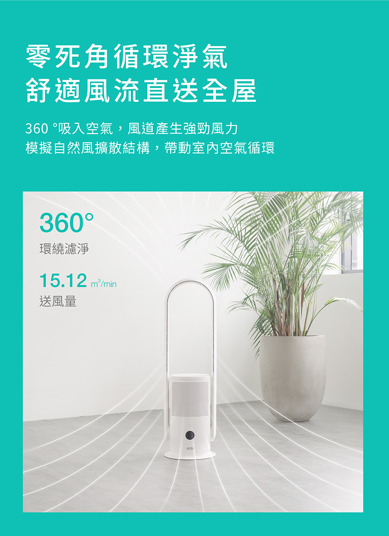 無葉扇設計,360°全方位空氣循環